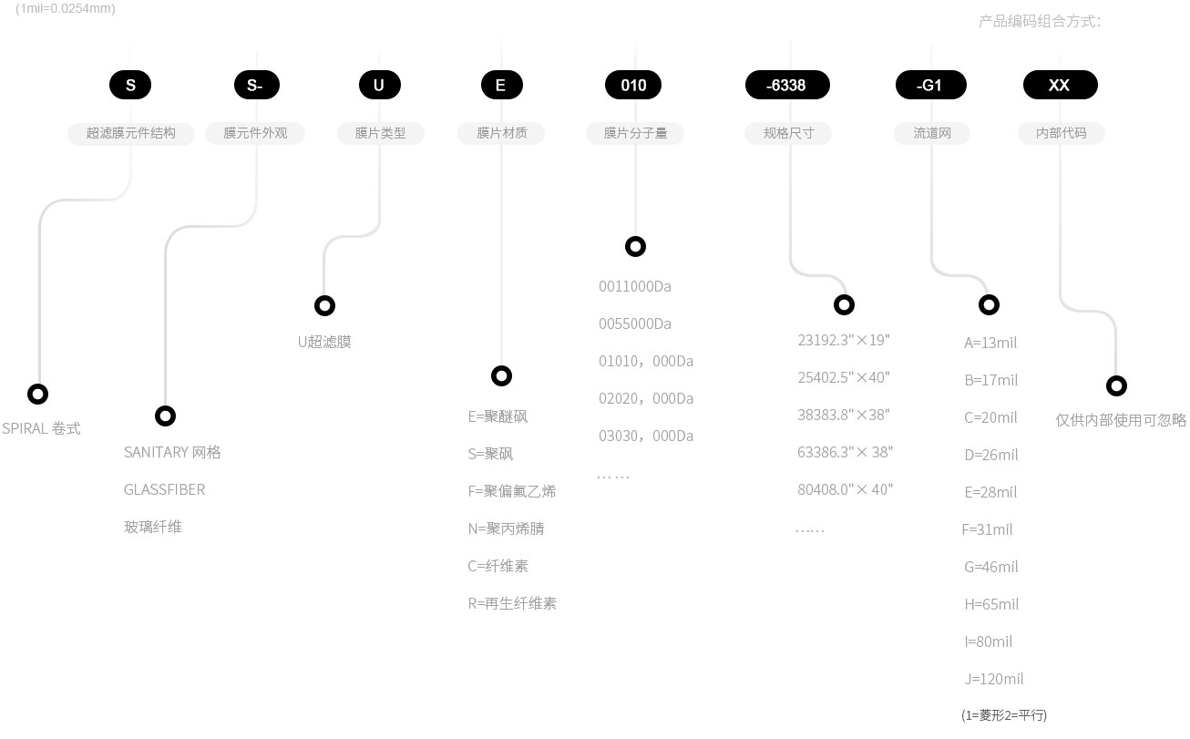 各種規(guī)格的膜元件可供選用