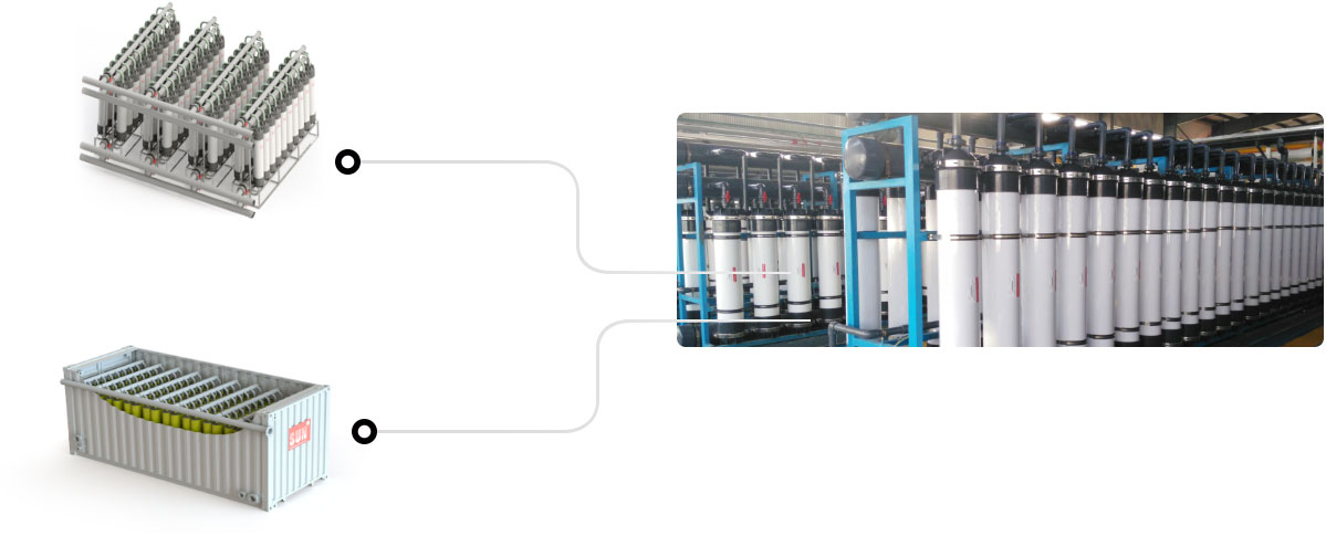 SMBR 是一種浸沒式,真正可反洗卷式膜,適用于工業(yè)廢水和工藝用水。SMBR 是在傳統(tǒng)卷式膜的基礎(chǔ)上增加曝氣擦洗,從透過液側(cè)提供壓力和流量進行反洗的創(chuàng)新性產(chǎn)品。它的最大優(yōu)勢在于無需在供給側(cè)提供高耗能的壓力和流量,而僅在透過液側(cè)按相應(yīng)產(chǎn)能提供抽吸能量。同時,它可與中空纖維膜按同樣的反洗頻次進行反洗。