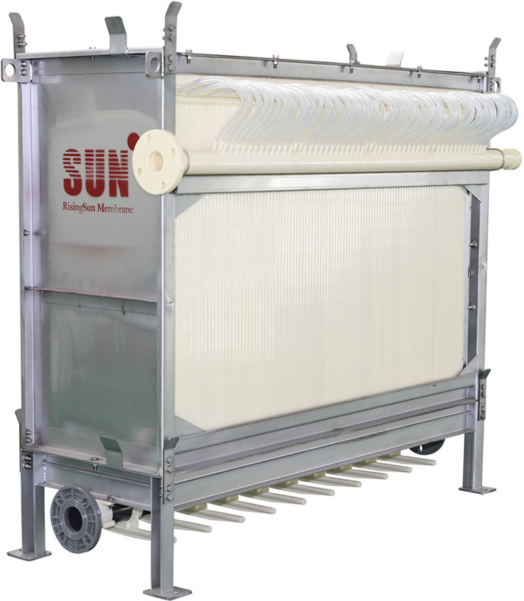 SUN?的平板膜采用PVDF材料,其擁有更好的化學(xué)穩(wěn)定性、抗污染性和機(jī)械強(qiáng)度。公 司采用先進(jìn)的制膜工藝,控制膜孔徑在 0.1um,并且有更高的產(chǎn)水通量和出水 水質(zhì)。板子采 用榫卯配合,膜片間距更穩(wěn)定,無需側(cè)裝板。膜片安裝時(shí),可從頂部向下安裝,也可從側(cè)部 安裝,不受施工現(xiàn)場(chǎng)條件限制。